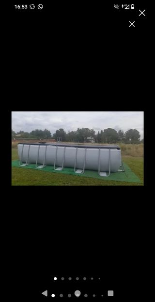 Piscina desmontable elevada. No está en perfectas condiciones esteticas, pero todas sus piezas están perfectas para su uso, sin roturas ni daños. Se entrega con todas las piezas necesarias su montaje, con depuradora de cartucho, tubos, accesorios y escalera. Se regalan algunos productos, cloro, algicida... Medidas 488 x 244 x 122 cm. - Forma: Rectangular. - Capacidad de agua: 11.532 L. Se entrega en mano en Madrid sur o Madrid zona de IFEMA