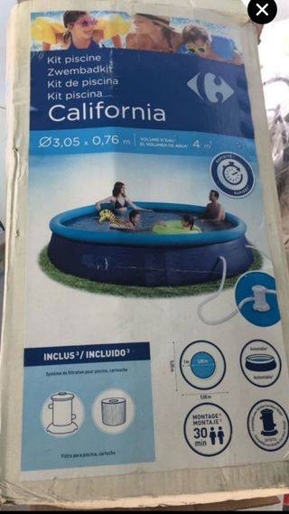 Piscina hinchable California, como nueva Ideal para el verano. cero pinchazos - Medidas: 3.05m x 0.76m. - Capacidad: 4m³. - Incluye sistema de filtración con filtro de cartucho. - Fácil montaje (30 min).