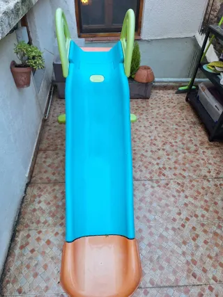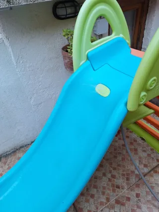 Tobogán de plástico para niños, perfecto para jugar al aire libre. MUY BUEN ESTADO - Diseño de dos colores: azul y verde. - Material resistente para mayor durabilidad.