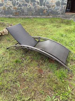 Tumbona reclinable para disfrutar del sol. - Estructura metálica. - Asiento y respaldo de plástico tejido.