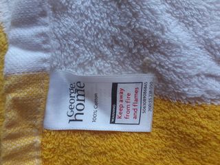 Conjunto de toallas de la marcas Primar, George Home... - Suaves y absorbentes. - Fabricadas con algodón. - Diseño con rayas blancas y amarillas. - otra azul y blancas - otra salmón y blanca Toallas de rayas. De diferentes colores. salmón, amarillo, azul con rayas blancas. Para ducha, baño o piscina. El tacto es muy suaves. 1 salmón 70x150 5.5€ marca Dunelm, 1 amarilla 77x142 5.5€ marca George Home, 1 azul 100x200 10€ de Primark. Para el cuarto de baño, ducha, piscina, playa...