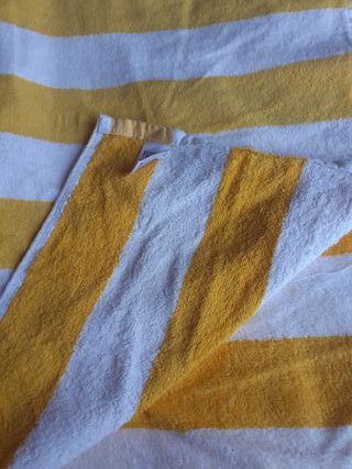 Toallas de rayas. De diferentes colores. Fucsia, salmón, amarillo, azul o beige. Las fucsia solo tienen dibujo por un lado. Para ducha, baño o piscina. El tacto es muy suaves. Tengo 2 fucsias 70x140 5.5€ c/u, 1 salmón 70x150 5.5€ marca Dunelm, 1 amarilla 77x142 5.5€ marca George Home, 1 azul 100x200 10€ de Primark. Si te llevas varias te hago descuento Para el cuarto de baño, ducha, piscina, playa...