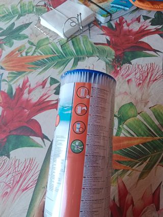 Filtro de cartucho para piscinas Intex Krystal Clear modelo C530. Incluye tecnología Hydro Aeration. También incluyo funda para tapar . Cualquier duda pregunta. Un saludo . - Caudal de bomba: 2.0 m³/hr. - Caudal del sistema: 1.7 m³/hr.