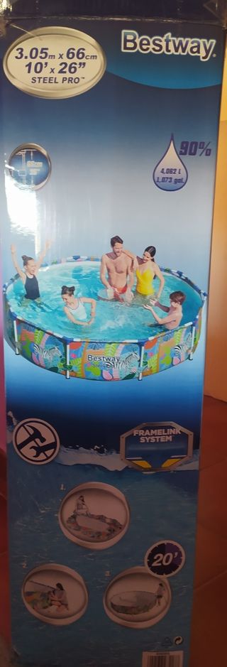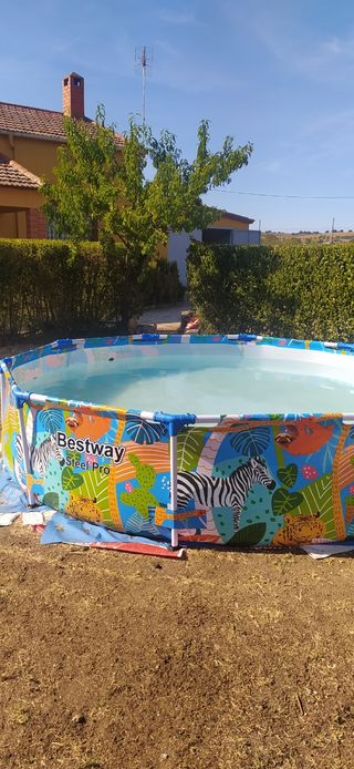 Piscina infantil de la marca Bestway, modelo Steel Pro. Perfecta para que los más pequeños disfruten del agua. - Estructura resistente. - Fácil de montar y desmontar. - Diseño en color azul. -Bomba y Filtro nuevo