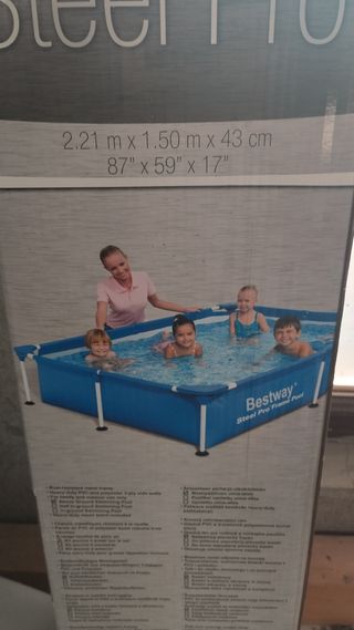 Piscina Bestway Steel Pro Frame, prácticamente nueva. Ideal para el verano. - Medidas: 2.21 m x 1.50 m x 43 cm (87" x 59" x 17"). - Estructura de acero resistente. - Paredes laterales resistentes. - Fácil montaje.