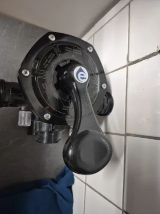 Válvula selectora de 6 vías para depuradora de piscinas. Permite seleccionar las diferentes funciones de filtrado. - Conexiones para mangueras. - Palanca de selección de posición.