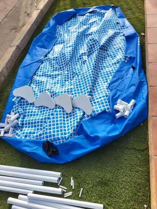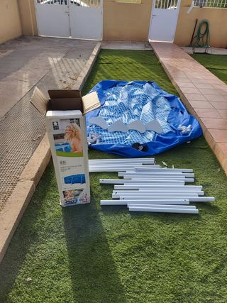 Piscina desmontable de la marca Bestway, con medidas: 4m largo x 2m ancho x 1m alto En muy buenas condiciones, solo 2 veranos de uso, está perfecta, bien cuidada y mantenida. Incluye la bomba depuradora que lleva de serie, que está NUEVA, sin usar, ya que utilizábamos otra, las mangueras de la bomba y la escalera. Las medidas específicas, así como características están en las fotos, también el precio de tienda, comprada en Leroy Merlín en verano 2023. NO SE ENVIA por el volumen que tiene. Se encuentra en Mar de Cristal (Cartagena) Se ha desmontado en la primera quincena de septiembre. (Piscina, jardín, playa, verano, patio, ter