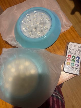 Ilumina tu piscina con estas luces LED RGBW. Son recargables y resistentes al agua. - 16 colores y atenuación. - Control remoto RF. - Batería recargable. - Temporizador (2/4/6H). - Impermeable IP68. - Cuentas LED RGBW.