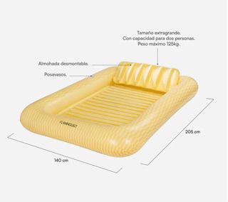 Preciosa tumbona amarilla para piscina, ideal para relajarse. Es extragrande y perfecta para dos personas, con un peso máximo soportado de 125kg. - Incluye reposacabezas desmontable. - Dispone de posavasos. la compre por 60€