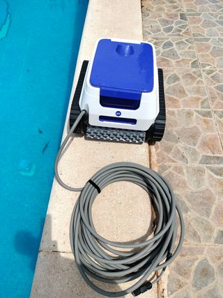 Robot limpiafondos para piscinas en buen estado. Es de color azul y blanco. - Limpia eficazmente el fondo de tu piscina. - Incluye cable de conexión.