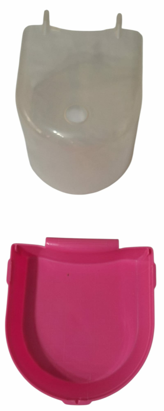 Bañera/piscina para pájaros con tapa protectora y base fucsia. Ideal para canarios, periquitos, agapornis y aves pequeñas. Reduce salpicaduras y mantiene el agua más limpia. Fácil de colocar gracias a sus enganches superiores.