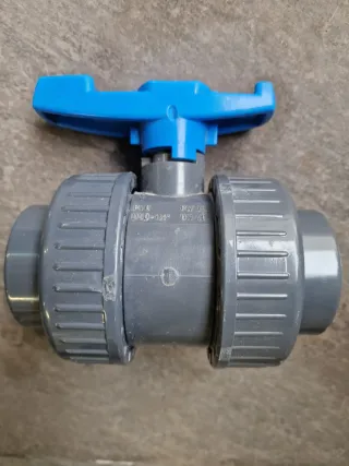 Válvula de bola de PVC de 40 mm. - Material: PVC - Diámetro: 40 mm - Color: Gris con maneta azul Made in Italy