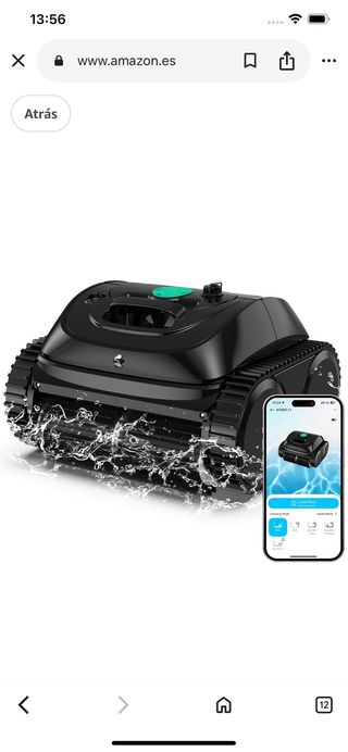 Robot limpiafondos para piscinas, con un diseño moderno en color negro y detalles plateados. 2025 Upgrade) WYBOT C1-01 Robot Piscina Limpiafondos y Paredes, para Piscinas enterradas y elevadas, 150min autonomía, Limpieza 4-en-1 (150m²), Navegación Inteligente & App, Blanco & Verde Claro OJO EL ROBOT NO FUNCIONA BIEN HACE ELCABALLITO Y SE QUEDA BOCA ARRIBA NO SE POR Q - Carcasa fabricada en plástico resistente. - Ruedas de goma para un mejor agarre.