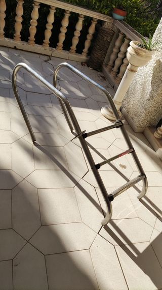 Escalera para piscina, sin usar, lista para montar. Se entrega en su embalaje original. - Incluye todas las piezas para su montaje completo. - Estructura robusta y ligera. - Diseño moderno y elegante. Mide 170 de alto