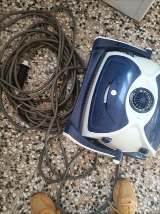 Aspiradora para piscinas en buen estado. Es de color azul y está hecha de plástico. - Ideal para mantener tu piscina limpia. - Fácil de usar.