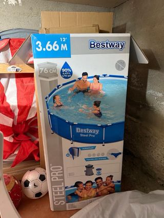 Piscina familiar Bestway, ideal para el verano. Está en excelentes condiciones y lista para usar. - Medidas: 3.05m x 1.83m x 46cm. - Capacidad para varias personas. - Perfecta para niños y adultos Usda solo 2 meses ,tiene alguna mancha x dentro del cloro y fuera en el suelo .pero está impecable y tiene la funda para taparla.