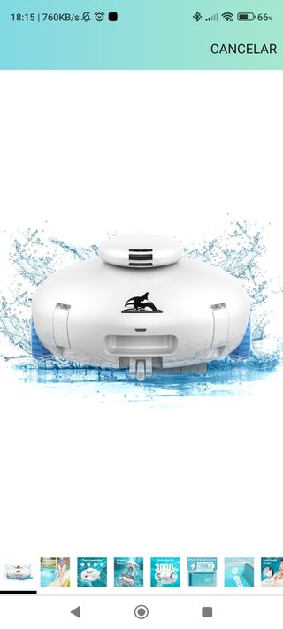 Robot limpiafondos para piscinas con batería de larga duración. La caja aún está precintada, ni siquiera se ha llegado abrir. - Marca: AQUVII - Color: Blanco - Capacidad de batería: 7500 mAh - Autonomía: 140 minutos