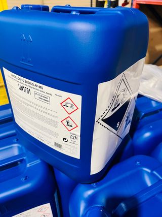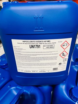 Garrafas de 25kg de cloro liquido (hipoclorito sodico) para Piscinas.