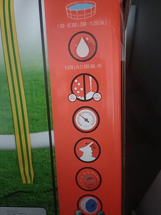 Piscina de gran tamaño, perfecta para disfrutar en familia o con amigos. - Dimensiones: 4,57 metros de ancho y 1,22 metros de largo. - Material resistente para mayor durabilidad. Nueva a estrenar pongo foto piscina montada sería igual. Con filtro de arena, clorador salino y calentador de agua y la escalera grande
