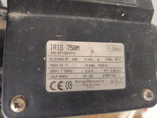 Se vende depuradora de piscina IRIS 750M en buen estado. Funciona con una bomba eléctrica. - Incluye filtro de arena de color rojo. - Bomba con caudal de 67-226 l/min. - Presión máxima de 19.5 m. - Potencia de 0.65 kW. - 230V, 50Hz.