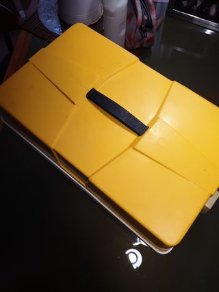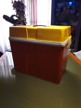 nevera vintage de los años 80. tiene algunos defectos por el paso del tiempo,cierra bien y tiene el accesorio que venía como opción que se solía romper o perder.