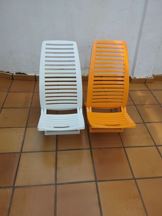Dos sillas de playa, son bajas y cómodas. Son 10€ cada una.