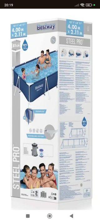 Piscina Bestway Steel Pro, ideal para disfrutar del verano. Está en buen estado y lista para usar. - Medidas: 4.00m x 2.11m x 81cm - Sistema de filtro incluido - Estructura de acero resistente