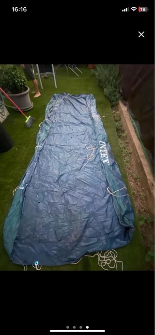 Lona para piscina Intex, modelo 200x200. Está en buen estado, aunque presenta algunas marcas de uso. - Medidas: 200x200 cm - Marca: Intex - Modelo: 200x200 F D PRO - Incluye cuerda para sujeción.