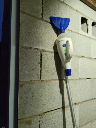 Barredora desmontable para piscinas. Su diseño permite un fácil montaje y desmontaje. - Cabezal de aspiración azul. - Cuerpo principal blanco. - Mango extensible de metal. Usada un año.