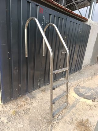 Escalera para piscina en buen estado. Ideal para facilitar el acceso a piscinas elevadas. - Estructura resistente. - Fácil de instalar. - Diseño práctico y funcional.