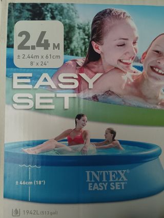 Piscina inflable INTEX Easy Set de 3,7 metros, ideal para el jardín. forma circular, no necesita motor. Es una piscina en excelentes condiciones, lista para disfrutar. - Medidas: 3,66m x 76cm (12' x 30') - Capacidad: 5621L (1485 gal) - Diámetro interior: 58cm (23') se ha utilizado una vez para poder vaciar otra piscina.