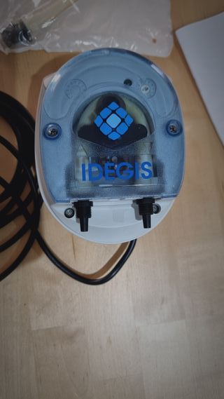 Bomba dosificadora IDEGIS, para dosificar productos de piscina, sin usar, con sus accesorios y caja.