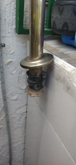 Pasamanos de aluminio con base metálica, ideal para piscinas. - Diseño curvo y elegante. - Materiales resistentes a la intemperie. Tal cual se ve en las fotos, está nuevo, preparado para colocar en la piscina y hacerla más elegante
