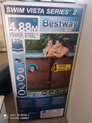Piscina desmontable Bestway Swim Vista Series II. - Diámetro de 4.88 metros. - Altura de 1.22 metros. - Estructura Power Steel resistente. - Incluye accesorios.