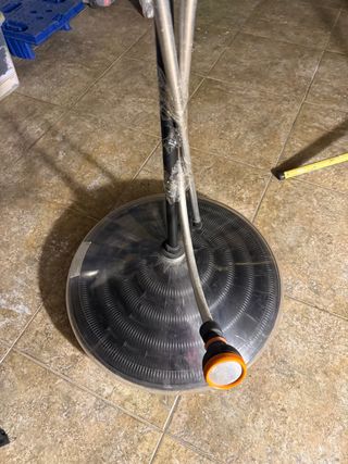 Ducha solar para exteriores, ideal para calentar agua de forma ecológica. Su diseño circular la hace muy práctica. - Base redonda. - Manguera incluida.