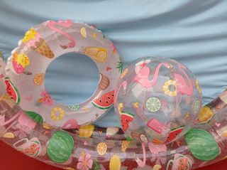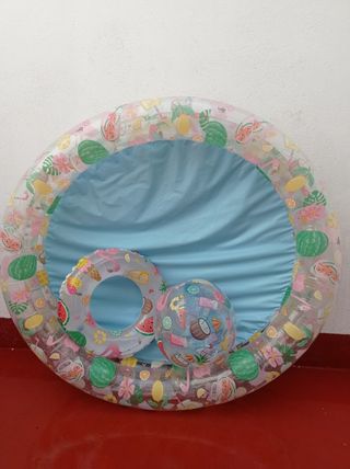 Divertido set INTEX para niños con piscina, flotador y pelota hinchables perfecto para disfrutar en la playa o el jardín. Piscina con medidas 122 cm de diámetro y 25 cm de altura, pelota y flotador con 51 cm de diámetro. Capacidad para 2 niños. Piscina redonda construida con 2 anillos hinchables Material resistente de vinilo con grosor 0.20 mm en la pared y 0.18 mm en el suelo Estampado veraniego tropical. Usado pero en perfecto estado.