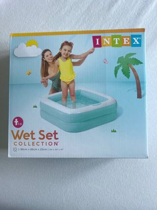 Piscina inflable Intex Wet Set Collection. Recomendada para edades de 1 a 3 años. 86 cm x 25 cm (34 x 10). Solo 2 usos. Entrego en Salamanca, zona estación de bus. Entrego en Madrid, zona Mercado Chamartín/metro Colombia, Parque Juan de la Cosa. Envio por correo ordinario y pago con Bizum. Otra opción de compra con protección en el envío, pregúntame.