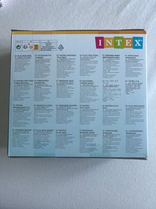 Piscina Intex para niños, ideal para el verano. Está en buenas condiciones, aunque la caja presenta algunos daños. - Medidas: 1,22m x 1,22m x 30cm. - Incluye estructura metálica.