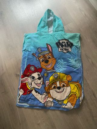Toalla tipo poncho con capucha, perfecta para los fans de Paw Patrol. Ideal para la playa o la piscina. - Diseño con los personajes de Paw Patrol. - Capucha integrada para mayor comodidad. - Fabricada en tela suave y absorbente.
