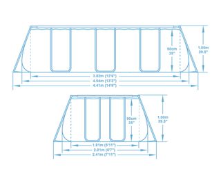 vendo piscina comprada hace 2 años y usada un solo verano,tiene todos los accesorios y incluye la cubierta que la compré a parte,la quito porque me ocupa mucho espacio en mi terraza. Las dimensiones están en la foto...solo la cubierta me valió 30€,es ideal para cuatro personas,incluye los filtrosde limpieza,y más de los 2 que vienen, para una terraza grande o parcela es ideal. también regalo una malla negra para poner debajo de la piscina.