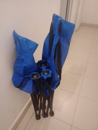 Conjunto de sillas plegables. Son cómodas y fáciles de transportar. - Estructura metálica. - Tejido de poliéster a rayas. Precio por las tres 60€. Por separado 20€ cada una.