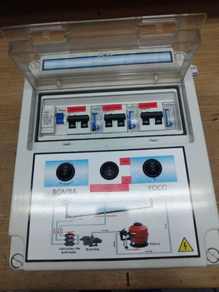 cuadro de piscina. - 3 transformadores para 3 focos con regulador manual y automatico. - Bomba pisca modo manual y automatico - Bomba jacuzzi modo manual y automatico. ( envios a toda españa ) 24-48h.