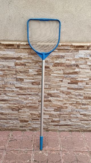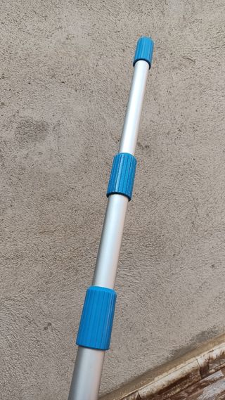 Mango telescópico con accesorio de malla limpiasuperficie y accesorio limpiafondos manual. Mango de 0,95 a 2,40m extensible