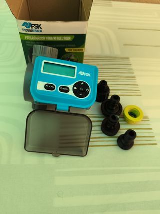 Programador para nebulizador FSK, diseñado para baja presión. Permite la programación de ciclos de encendido y apagado por segundos. - Ideal para sistemas de nebulización. - Configuración de ciclos por segundos.