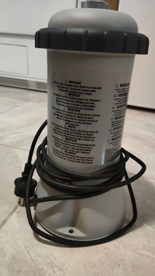 Bomba de filtración para piscina. Incluye cable de alimentación. - Válvula de purga de aire. - Falta el cartucho de filtro.