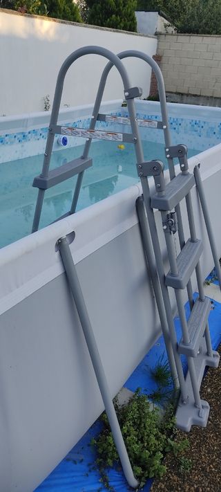 Piscina Bestway Swim Vista Series II, en perfecto estado, utilizada una única vez. Tiene una mancha en el suelo debido a la pastilla del cloro. - Medidas: 4.27m x 2.50m (14' x 8'). - Estructura de acero. - Incluye depuradora. - Listo para disfrutar del verano. - Tiene dos ventanas redondas laterales - La escalera se vende montada Sólo Venta en PERSONA.