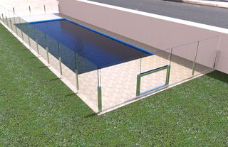 Valla para piscina en acero inoxidable y cristal.
