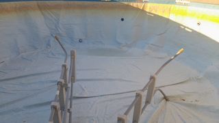 Vendo escalera de seguridad para piscina de 1.22 de altura y REGALO Piscina desmontable redonda de 4.57 diametro x 1.22 de alto, el liner tiene alguna pitera facilmente reparable, y la marca de estar al sol. Esta usada pero es perfectamente aprovechable.