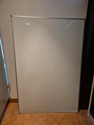 Pizarra blanca 102×70 de buen estado solo que tiene una grieta pero es chica ,se abre y se pone de altura a 165