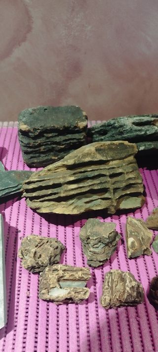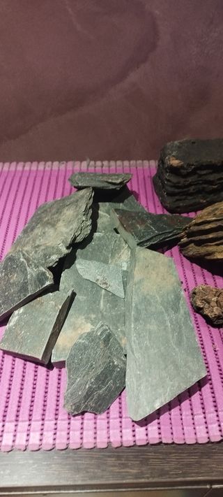 piedras muy bonitas para decoración acuario y algo de pizarra, el precio es por cada una de las grandes que son pagodas, pero por 25€ las dejo todas.